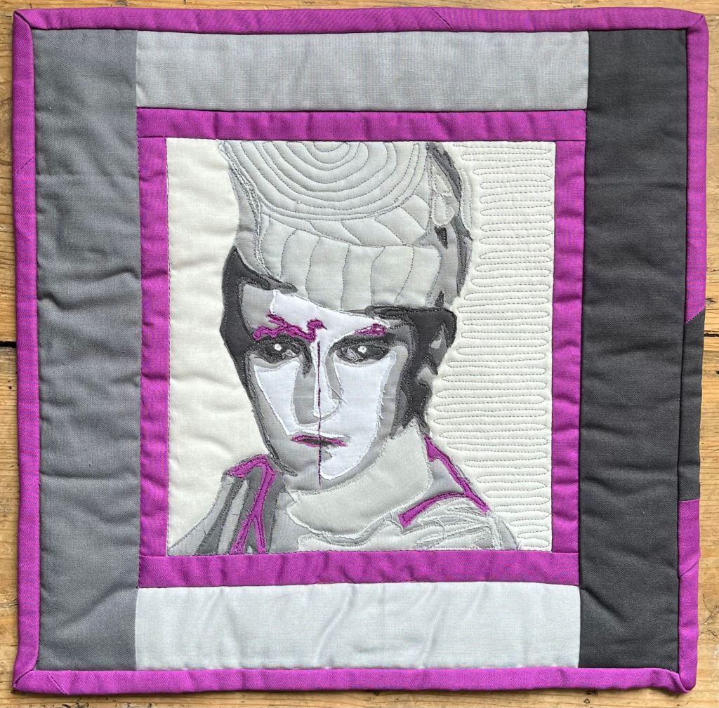 After a six week online portrait workshop with American Quilter Luke Haynes, this challenge gave me the inspiration to create an image of Steve Strange, singer in 1980’s ‘New Romantic’ band Visage whose big hit was Fade to Grey. I think my fifteen year old self would have approved.