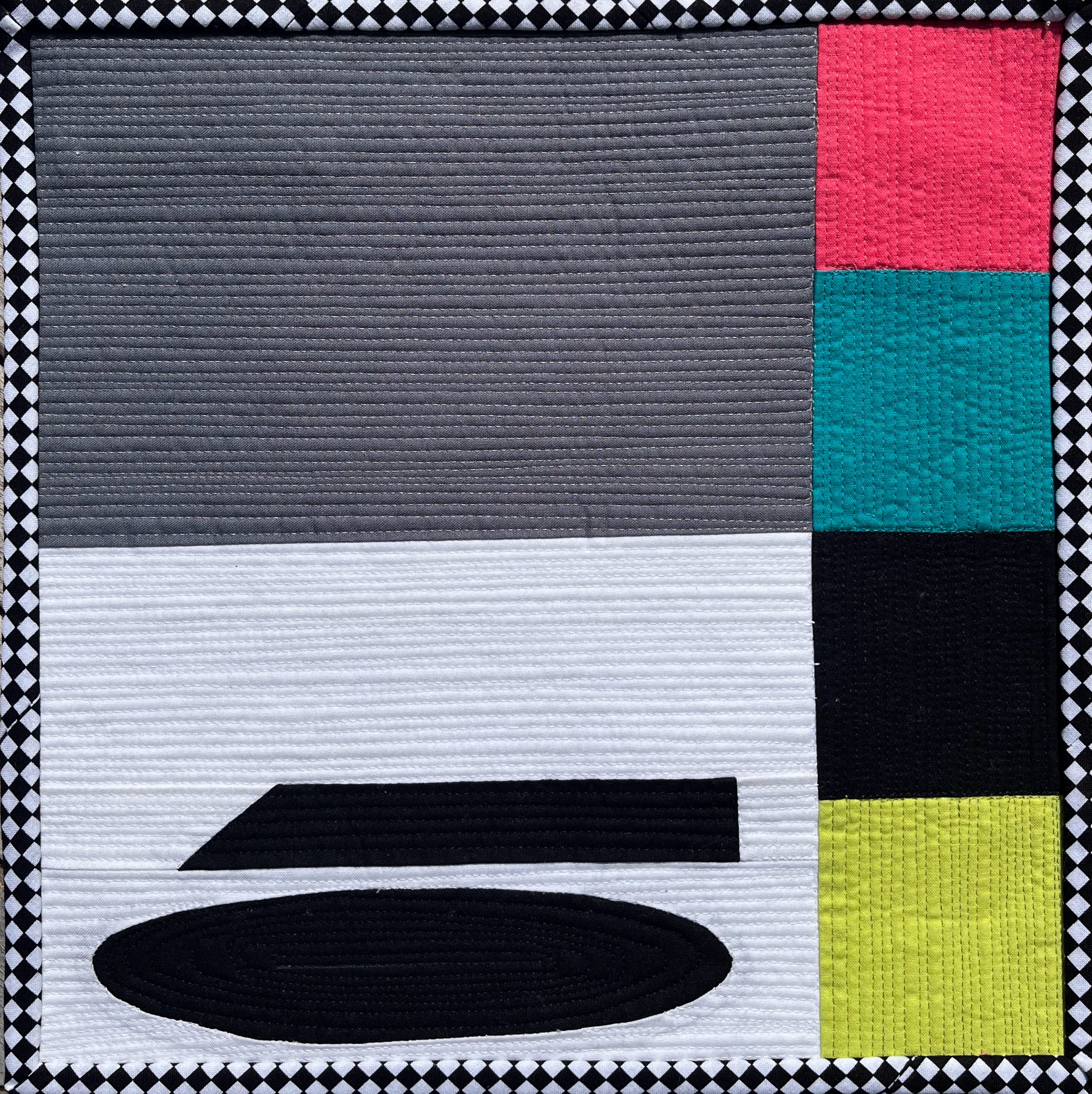 Jacob’s Ladder, Acrylic on board. The inspiration for my quilt came from a visit to the Summer Exhibition at the Royal Academy of Arts in June 2024. When I saw this piece it instantly reminded me of a modern quilt with square blocks and negative space, ideal for our mini quilt art challenge.